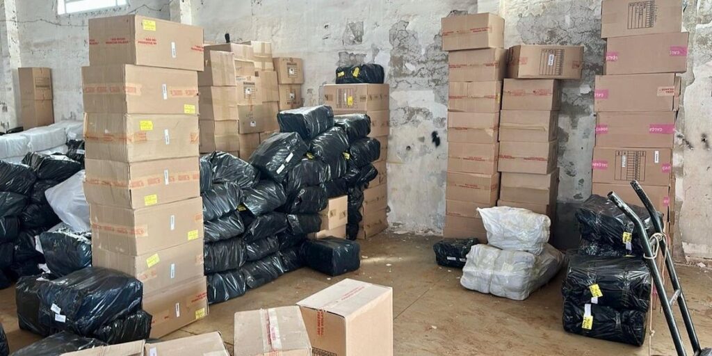 Receita Federal apreende 2.500 caixas de calçados falsificados em depósito clandestino em Foz
