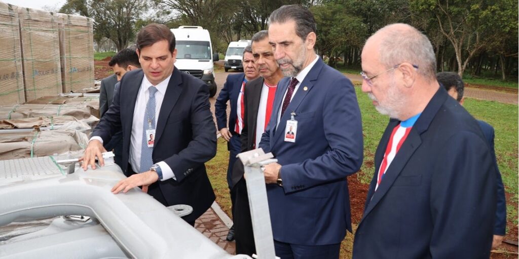 Membros da Diretoria Executiva da Itaipu Binacional, de ambas as margens, visitaram nesta quinta-feira (4) as obras da usina solar flutuante que está sendo implantada no reservatório da hidrelétrica. O projeto prevê a instalação de dez painéis modulares, sustentados por flutuadores interligados, com capacidade total de 1 MWp (megawatt-pico). Segundo o cronograma, a montagem das […]