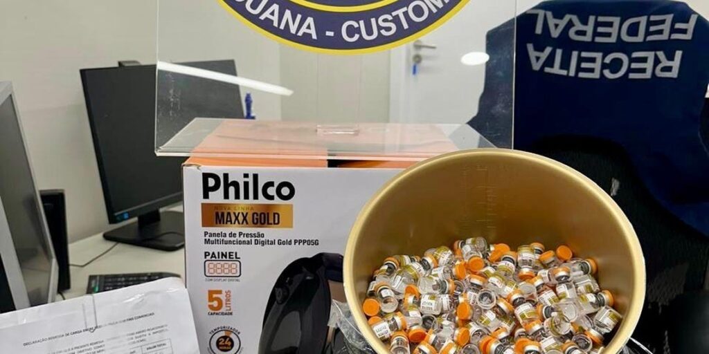 Foz do Iguaçu, PR – A Receita Federal apreendeu, na noite desta segunda-feira (24/11), uma carga irregular enviada por transporte aéreo no Aeroporto Internacional de Foz do Iguaçu. Durante uma fiscalização de rotina no setor de encomendas, servidores localizaram 276 frascos de tirzepatida TG 15 (0,5 ml) ocultos dentro de uma panela elétrica. A mercadoria […]