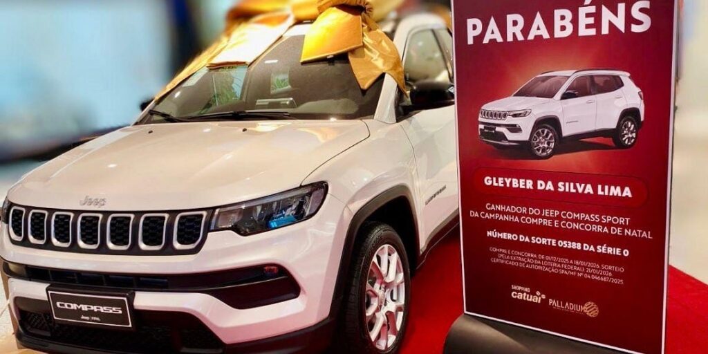Foz do Iguaçu, PR – O Catuaí Palladium iniciou 2026 com a entrega de um Jeep Compass Sport 0 km a um cliente do Paraná, como resultado da promoção “Compre e Concorra – Edição de Fim de Ano”. O sorteio foi realizado no dia 21 de janeiro, com base na extração da Loteria Federal, conforme […]
