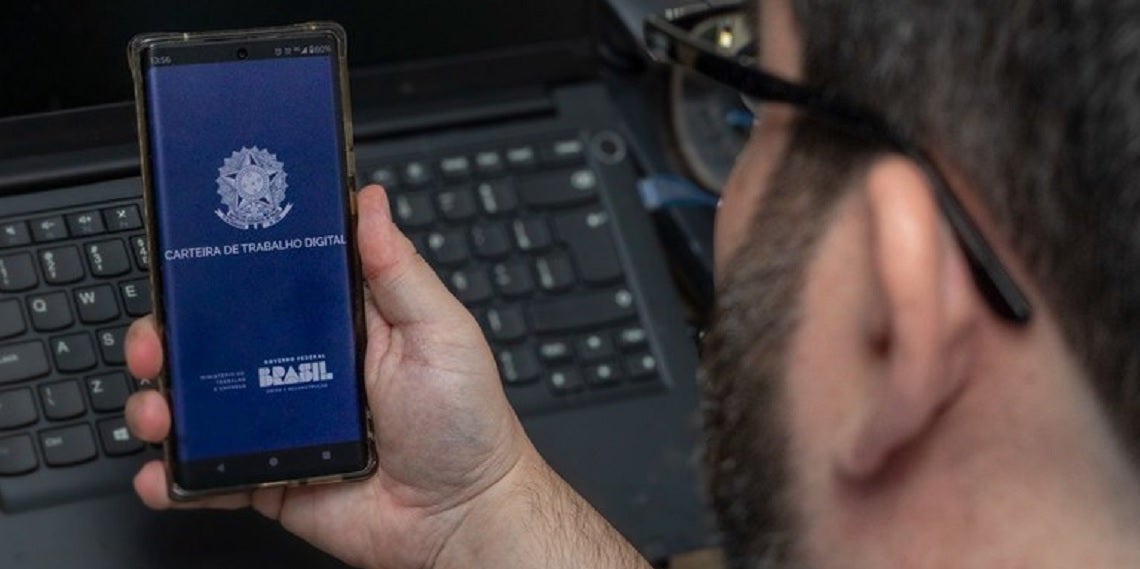 Os usuários podem acessar a plataforma pelo celular usando um login único no Gov.br ou pelo site Carteira de Trabalho Digital – Portal Emprega Brasil.